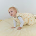 • Dependendo da temperatura, você pode colocar um body ou pijama de manga curta ou longa por baixo do saco de dormir