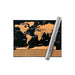 Mapa decorativo que permite marcar os países que visitaram raspando a camada superior; a superfície raspada esconde bandeiras coloridas e detalhes geográficos de cada país