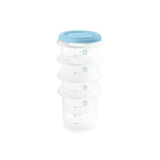 El juego de recipientes con tapas de colores que cierran herméticamente garantiza el almacenamiento seguro de alimentos para bebés sólidos y líquid...