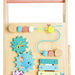 • 6 Atividades educativas integradas: xilofone musical com sons agradáveis, engrenagens giratórias, labirinto de contas, encaixes, jogo de loops para mover e deslizar