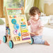 Andador multifuncional com 6 atividades para bebés. Desenvolve a coordenação motora e a independência. Inclui um xilofone, engrenagens e peças para encaixar formas.