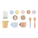 Hora de uma chávena de café ou chá! Com esta máquina de café em madeira, os pequenos baristas podem moer os grãos, colocar as cápsulas de café e mexer a bebida com uma colher. O conjunto inclui duas chávenas, duas colheres, uma jarra de leite, caixias de leite e até moldes para cappuccino para uma experiência completa de café.