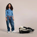 • Guías reflectantes en las ruedas y costuras luminosas en la tela de los asientos para aumentar la visibilidad y la seguridad.