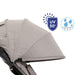 • A capota, com janela superior em rede, é fabricada em tecido hidrorrepelente e oferece proteção UV50+