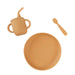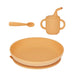 Conjunto indispensável para a introdução alimentar composto por um prato com ventosa, um copo com tampa e palhinha e uma colher. Em silicone de qualidade alimentar, macia e durável, estes três acessórios ajudam a desenvolver a autonomia e motricidade fina.