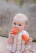 Palm Peach é um mordedor, brinquedo de banho e jogo sensorial cujo design, com várias cores e texturas, estimula os sentidos dos pequenos e incentiva-os à descoberta além de ajudar a aliviar a dor provocada pelo aparecimento dos primeiros dentes. O seu formato é simples de agarrar pelas mãos pequenas e de levar à boca pelo bebé.