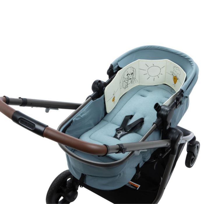 El libro de doble cara de Tiny Love tiene dos funciones: además de estimular la curiosidad y el desarrollo visual de los bebés y ayudar a alargar el tiempo que el niño pasa boca abajo, puede utilizarse como protector de cabecera, en el capazo o en la cuna. Fácil de plegar y llevar contigo a donde quiera que vayas.