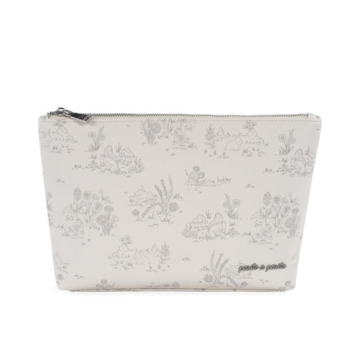 Con un diseño sencillo, el neceser con cremallera mantiene organizados de forma segura los productos de higiene del bebé durante las salidas.