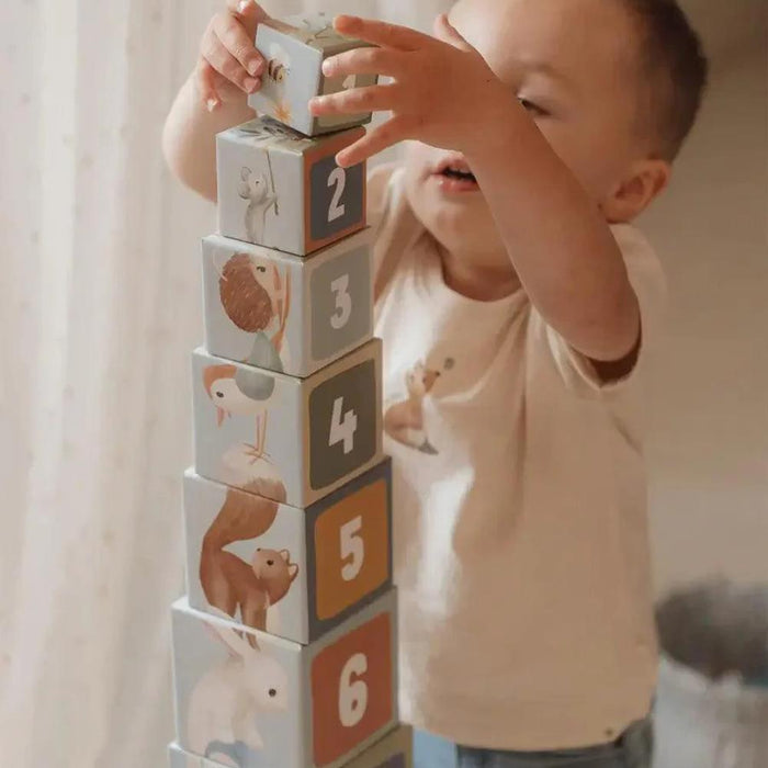 El conjunto de cubos numerados e ilustrados desafía al niño a construir una divertida torre. ¡Apila un bloque encima de otro y observa cómo crece la magia de Forest Friends! También puedes colocarlos horizontalmente en el suelo. Cada bloque presenta encantadoras ilustraciones de la colección Forest Friends, que incluyen ardillas, zorros, conejos, erizos, búhos y hongos, y desafía a los niños a contar hasta 10 de una manera lúdica.