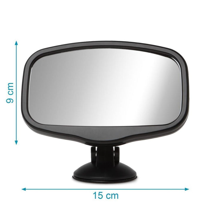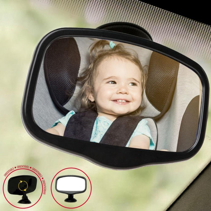 El espejo retrovisor delantero se fija con una ventosa a la ventana delantera de tu coche, se puede girar y orientar como desees para que puedas ver fácilmente al bebé.