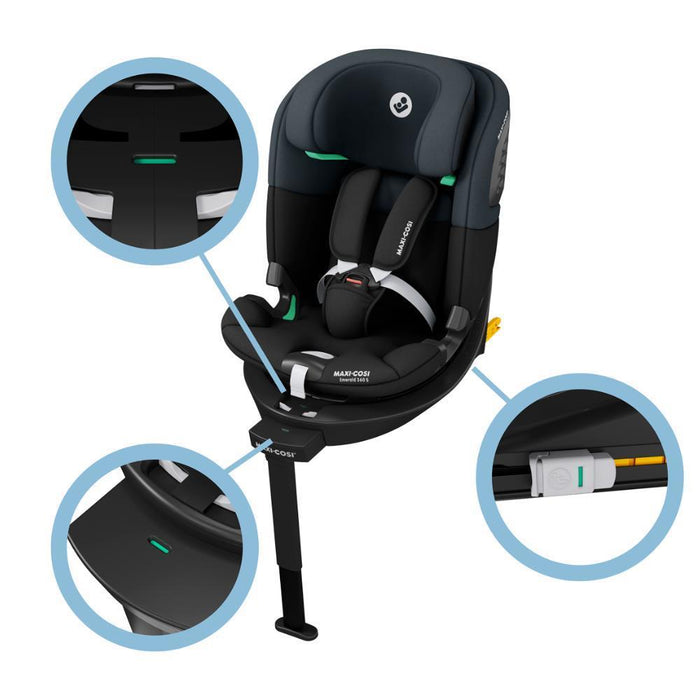 La Emerald 360 S crece con su hijo. Con instalación Isofix, Sistema G-CELL (protección contra impactos laterales), reductor recién nacido extraíble y rotación FlexiSpin 360º, la silla evolutiva Maxi-Cosi garantiza seguridad y comodidad desde el nacimiento hasta los 12 años aproximadamente (150 cm de altura).