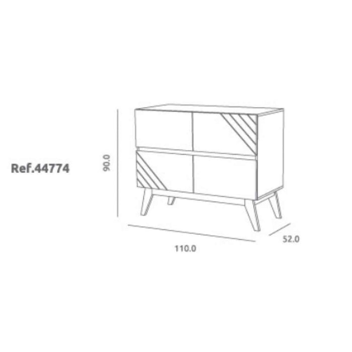 Material: Madera de pino / MDF lacado / Haya Alto: 90 cm Ancho: 52 cm Largo: 110 cm