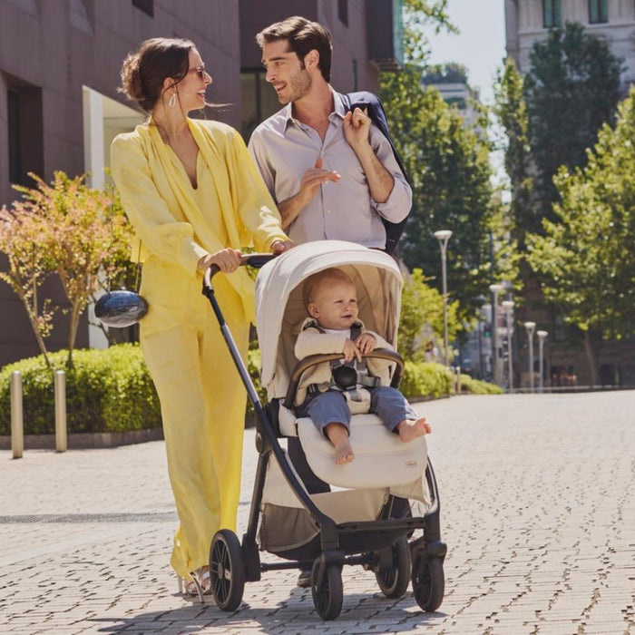 Homologado desde el nacimiento hasta los 22 kg, el cochecito Bellagio tiene un asiento reversible, con respaldo reclinable en 4 posiciones. Elegante y resistente, ofrece una fácil conducción gracias a sus grandes ruedas, rodamientos y amortiguadores. Y cuando necesites transportarlo, ciérralo simplemente gracias al mecanismo de cierre automático OneTouch.