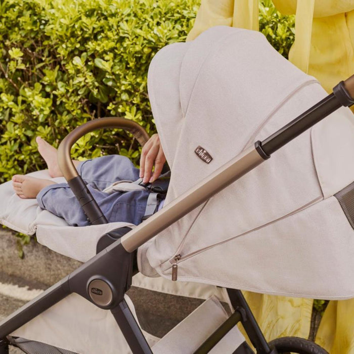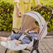 • Capucha XL repelente al agua, con protección UV50+ y ventana de malla que favorece la circulación del aire y permite mantener el contacto visual con el bebé.