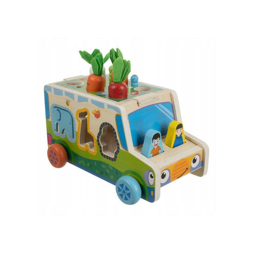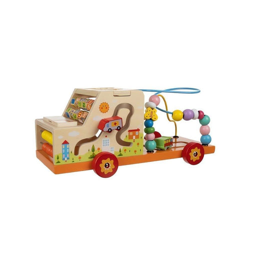 O Carro de Atividades em Madeira 7 em 1 com Classificador é um brinquedo adequado para promover o desenvolvimento infantil.