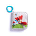 Este libro de tela, con varias ilustraciones, diferentes texturas y elementos interactivos que captan la atención del bebé, no le rasga ni le hace daño. Además lleva una anilla para que puedas fijarlo donde quieras.