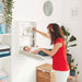Imprescindible para lavar, cambiar y vestir a su bebé, este cambiador premontado facilita el cuidado de su bebé todos los días. Ahorro de espacio para habitaciones más pequeñas Se abre y cierra fácilmente con una mano Diseño liviano y seguro para montaje en pared Barreras laterales resistentes para mayor seguridad Estante de almacenamiento para organizar lo esencial Cambiador lavable incluido Listo para ensamblar