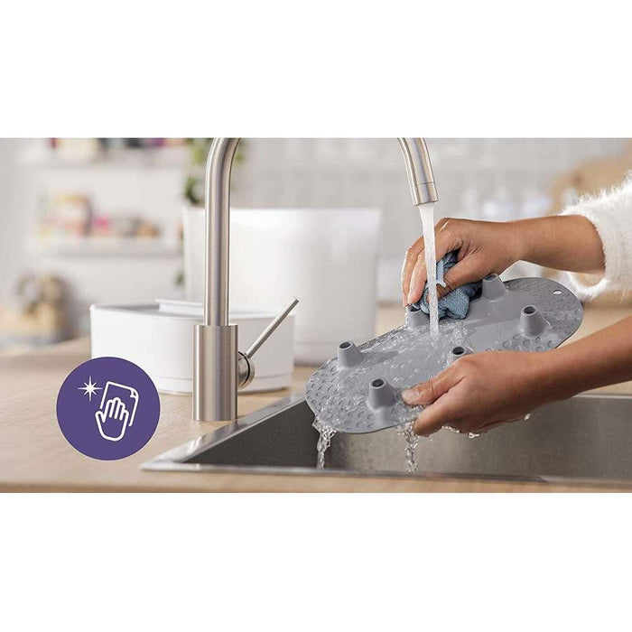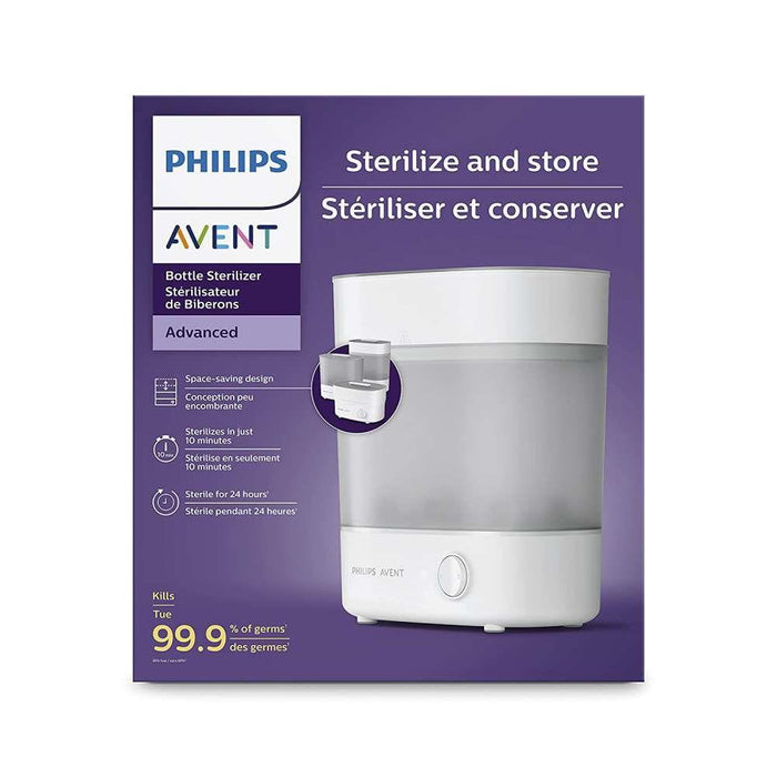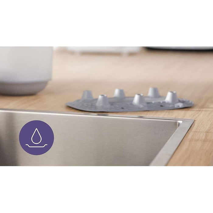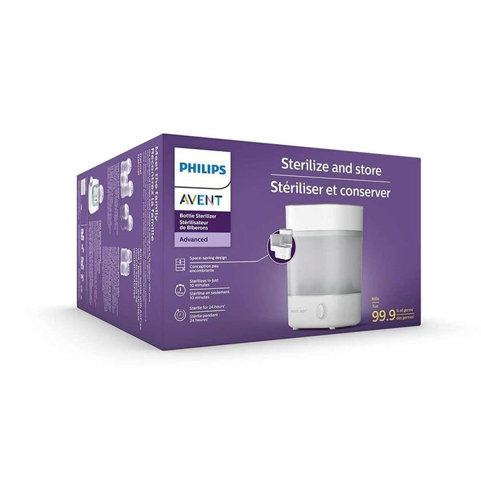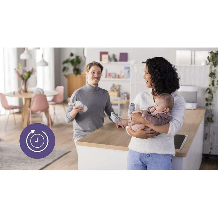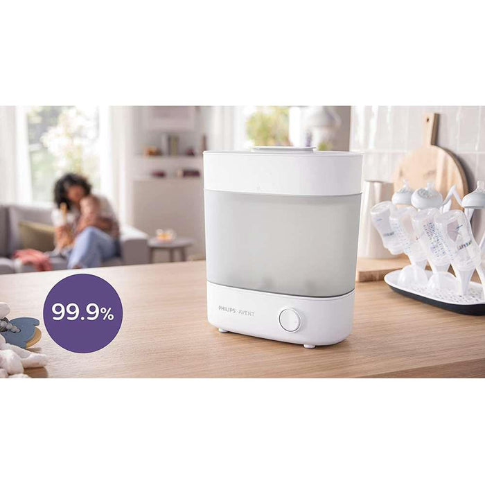 El esterilizador de biberones avanzado, delgado pero espacioso, es rápido y eficiente y elimina hasta el 99,9% de los gérmenes para su tranquilidad en cada comida. El ciclo de esterilización dura sólo 10 minutos, tras los cuales el dispositivo se apaga automáticamente. Sencillo, eficaz y sin necesidad de utilizar productos químicos, sólo utiliza vapor para dejar los utensilios libres de gérmenes.