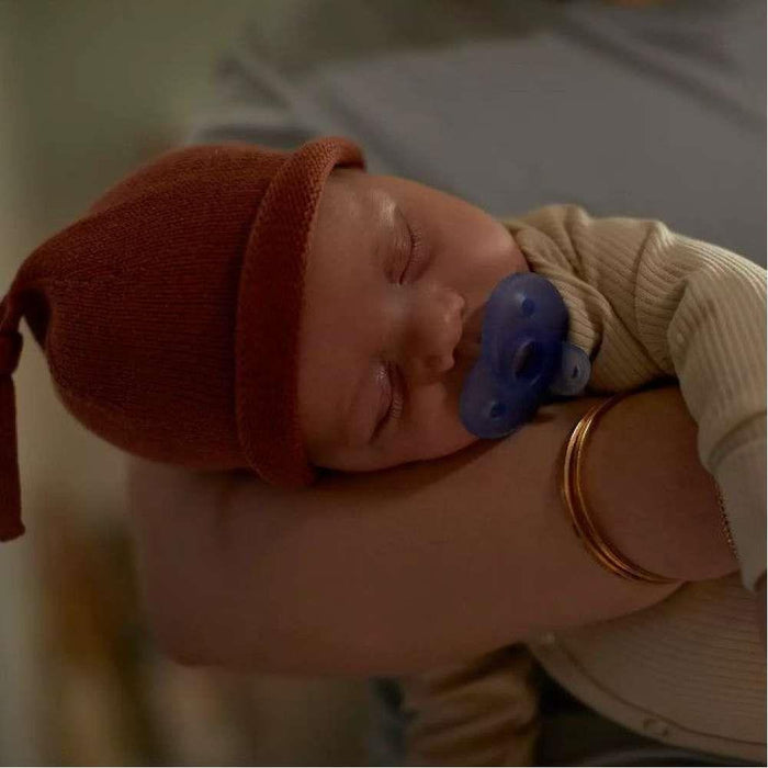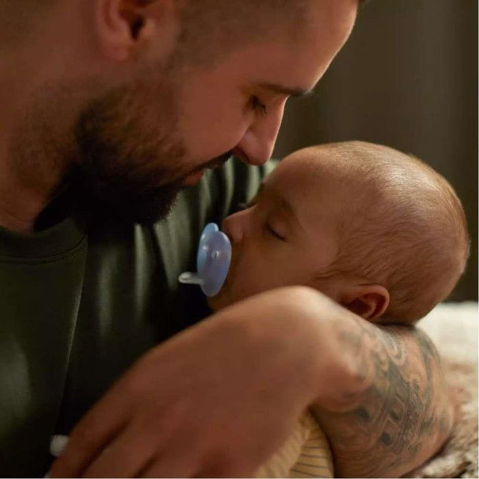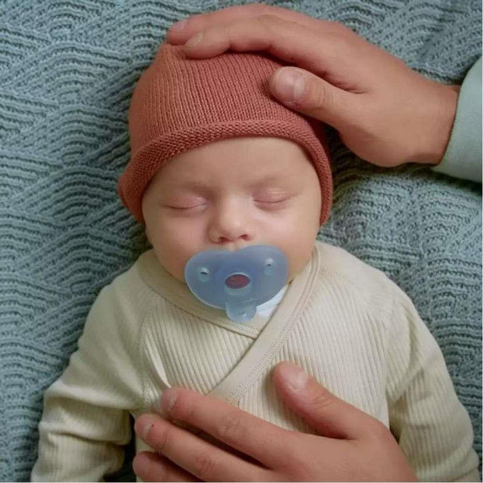 El chupete Soothie fue diseñado basándose en los contornos naturales de la cara del bebé y pensado para establecer un vínculo aún más fuerte con el bebé ya que su diseño exclusivo permite colocar el dedo en la tetina. El escudo curvo en forma de corazón no golpeará la naricita y la tetina de ortodoncia, con forma simétrica, respeta el paladar, los dientes y las encías del niño.