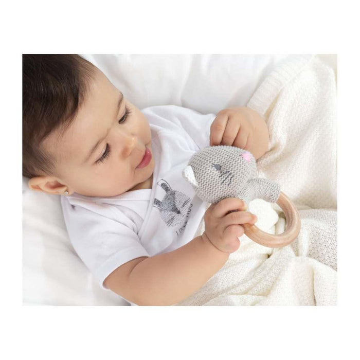 Esta rueca en forma de anillo con figura de crochet se puede sujetar fácilmente con las manos de los niños pequeños. Con un sonido chirriante cada vez que se agita, este juguete puede despertar la curiosidad de tu bebé. Incluye caja de regalo.