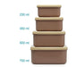 • Conjunto inclui 4 caixas de diferentes medidas e respetivas tampas