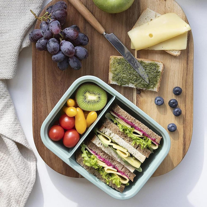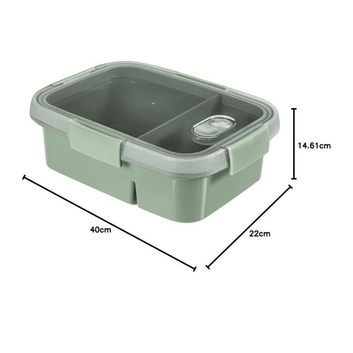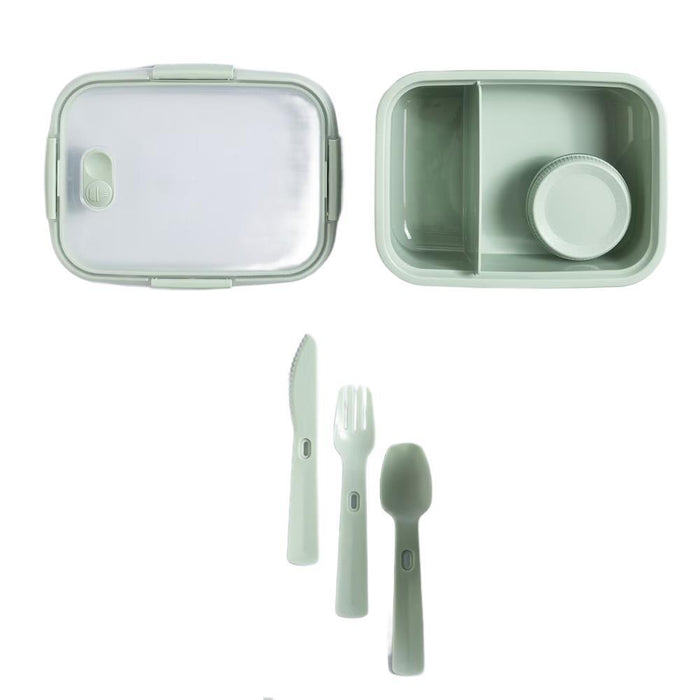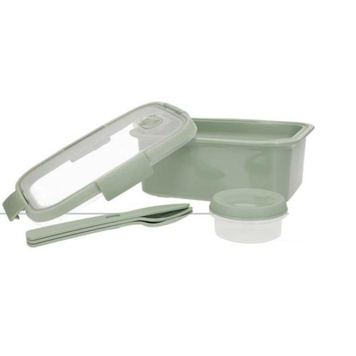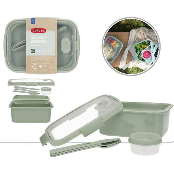 • Incluye: Caja grande con tapa hermética, divisores, cubiertos (tenedor, cuchillo y cuchara), caja redonda pequeña