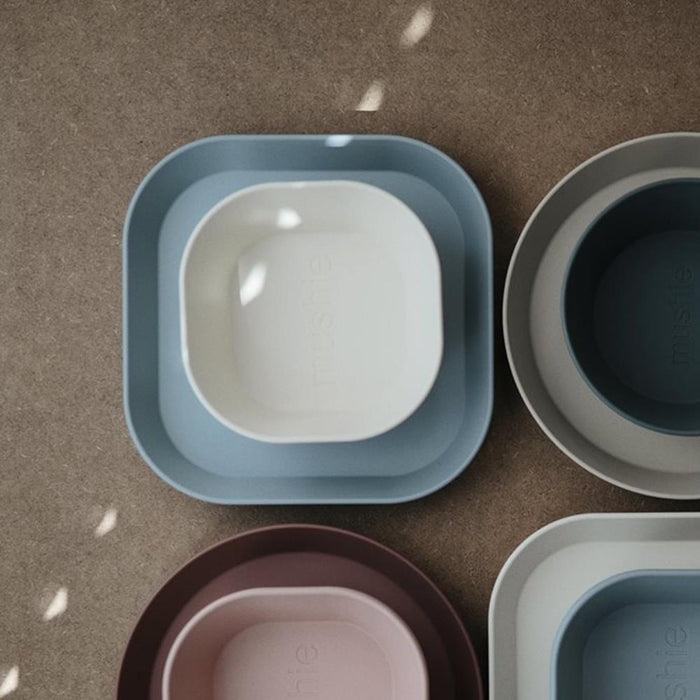 Con colores suaves y un diseño versátil, este juego de cuencos cuadrados es adecuado para que lo manejen las manitas de su hijo. Fabricadas con un material resistente y sencillo de limpiar, facilitan la hora de la comida.