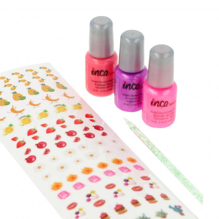 • Incluye: 3 esmaltes de uñas, hoja con stickers para uñas