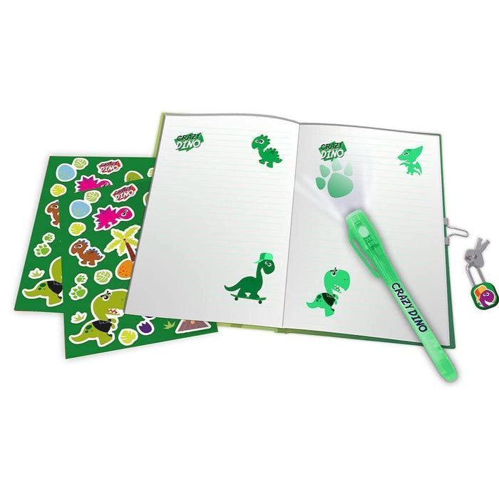 Diario con bolígrafo mágico con luz UV Crazy Dino