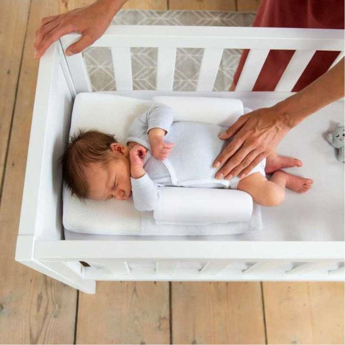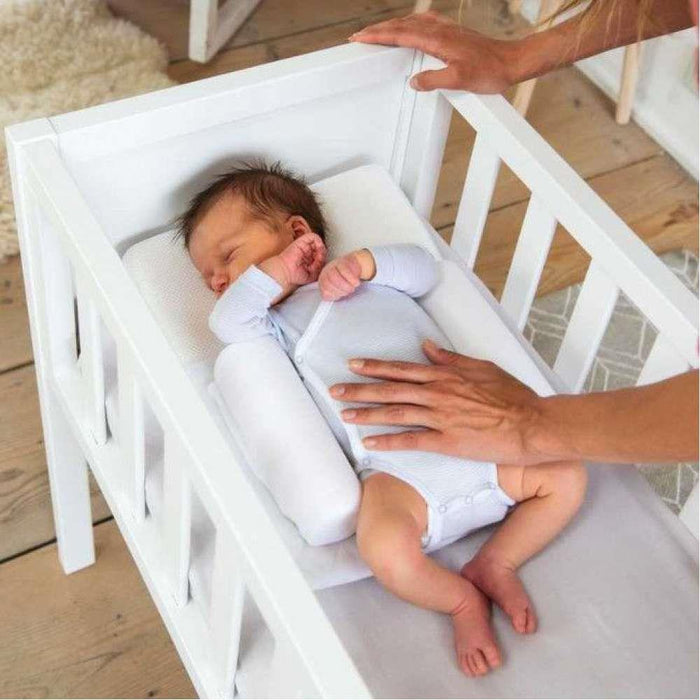 El Supreme Sleep pequeño es un posicionador que permite que tu bebé se acueste cómodamente boca arriba, fabricado con espuma viscoelástica, que se amolda perfectamente al cuerpo y cabeza del recién nacido sin ejercer presión, previniendo el riesgo de plagiocefalia, más conocida como plana. síndrome de la cabeza. Compacto y práctico, dispone de dos rodillos laterales configurables según la morfología y necesidades del bebé.