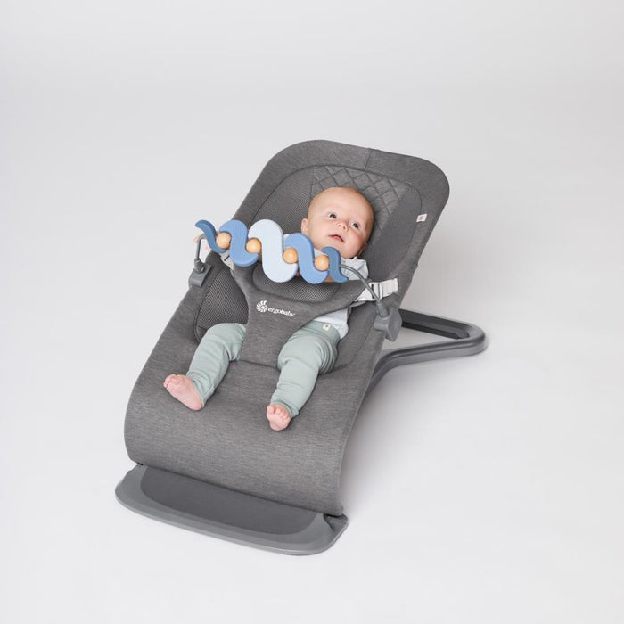 El colorido juguete con formas giratorias de madera y silicona, de Ergobaby, estimula la curiosidad y el desarrollo motor y cognitivo de tu bebé.