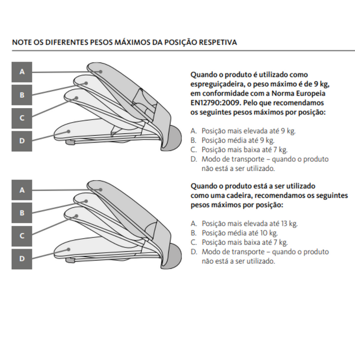 Como tumbona: máximo 9 kg (6 meses aproximadamente).