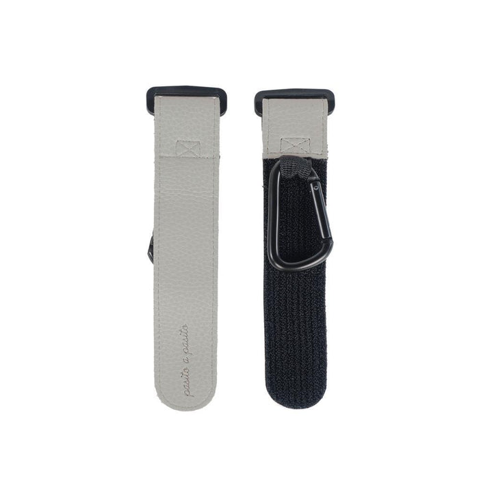 Conjunto de dos ganchos que se fijan al manillar de cualquier cochecito y permiten colgar diversos objetos o bolsas/mochilas de maternidad.