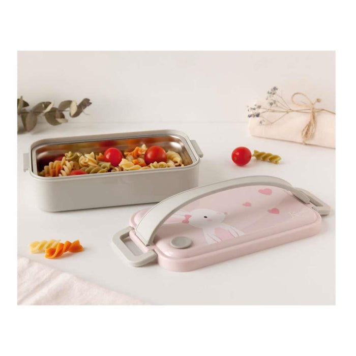 Kiokids Fiambrera/fiambrera de acero inoxidable con asa de conejo rosa