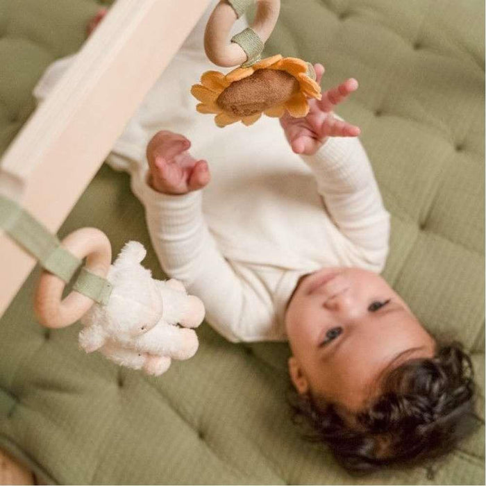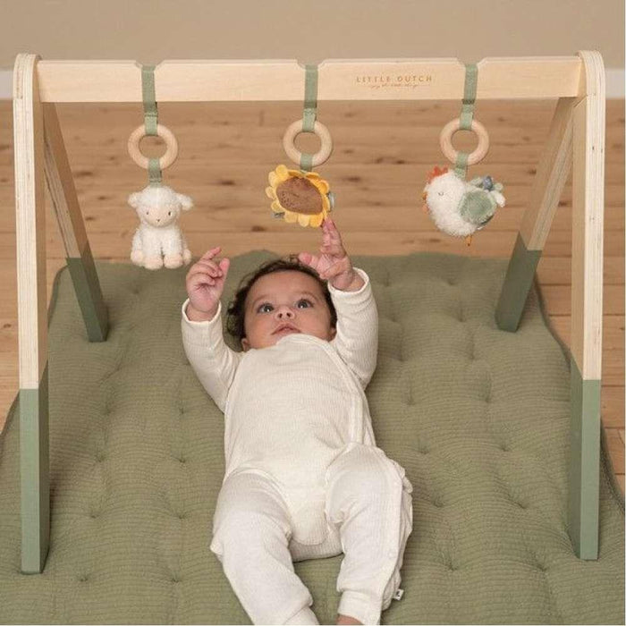 Durante los primeros meses, el bebé se acostumbra al mundo fuera del útero, desarrolla una coordinación básica y gana control muscular. Este es el momento de introducir estímulos que ayudarán a potenciar la coordinación motora, la cognición visual y auditiva, y tus sentidos y emociones. El gimnasio Little Dutch, fabricado en madera resistente, incluye tres juguetes con diferentes texturas que fomentan la curiosidad de tu hijo.