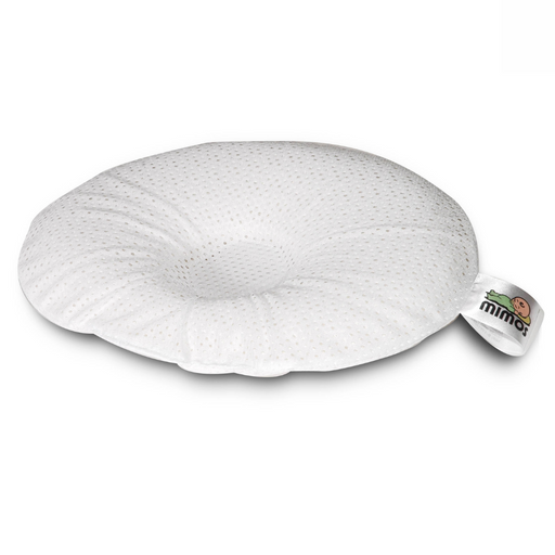 La almohada Mimos, fabricada con un tejido tridimensional que deja pasar el aire -sin riesgo de asfixia- ofrece un buen soporte para el cráneo del bebé en situaciones en las que permanece mucho tiempo tumbado, ya sea durmiendo en la cuna o paseando en el capazo o jugando en la colchoneta de actividades.