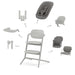 • Incluye: Silla Lemo, Baby Set, bandeja, tumbona (con reductor y reposacabezas), adaptadores, extensores de piernas y cojín/reductor