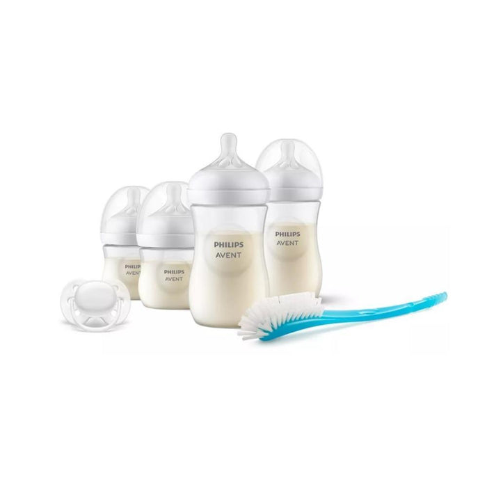• El set de regalo para nacimiento Natural Response contiene: dos biberones (125 ml), dos biberones (260 ml), un chupete ultra suave de 0 a 6 meses y un cepillo para limpiar biberones.