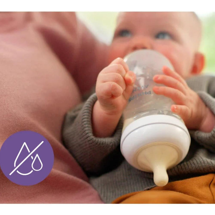 • Tetina antiderrames: la leche sólo sale cuando el bebé succiona, evitando salpicaduras y pérdida de leche