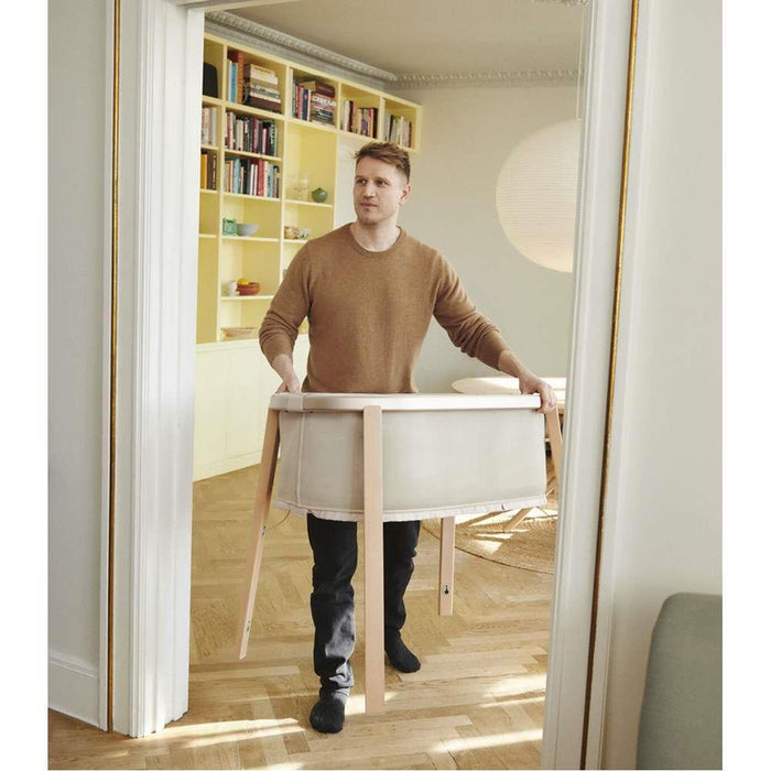 Aireado y ligero, con una suave forma ovalada, Stokke® Snoozi™ sostiene a tu bebé cómodamente y puede utilizarse desde el nacimiento.