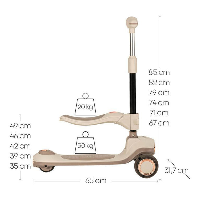 • 2 en 1: utilizado como scooter o como triciclo sin pedales