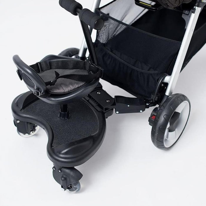 O patim da Olmitos, adequado para crianças entre os 2 e os 5 anos (peso máximo de 25 kg), pode ser usado com ou sem assento, e permite transportar confortavelmente uma criança quando passeiam em família e leva outra no carrinho de passeio. Encaixe universal.