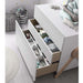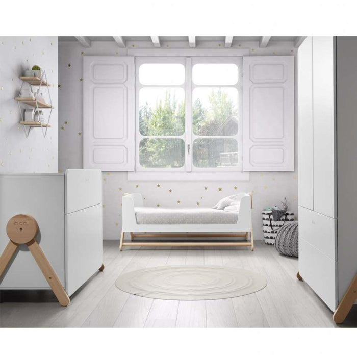 A coleção de mobiliário Swing é caracterizada pelo seu design refinado de estilo moderno e minimalista que combina o branco com o laminado original da faia de cor escandinava.Uma coleção de linhas puras, elegantes e robustas, concebidas e fabricadas em Espanha. A coleção Swing surge de uma colaboração da Micuna com o designer valenciano Vicent Peris.A cómoda da coleção Swing mostra visualmente duas gavetas, mas quando se abre a inferior, aparece uma terceira gaveta. Apenas esta gaveta interior incorpora um sistema de empurrar, que permite a abertura com uma ligeira pressão e o fecho é mais suave e silencioso. Pode comprar ainda um organizador de gavetas interior (opcional), para ter roupa mais ordenada e todos os utensílios de bebé.Todas as coleções da Micuna são feitas de madeira de faia lacada branca com tintas à base de água e vernizes não tóxicos. Toda a madeira provém de florestas geridas de forma sustentável. O design, produção e distribuição são desenvolvidos sob as premissas do eco-design. Tendo a marca um grande empenho no fabrico ecológico.Características:- Sistema de empurrar apenas na sua gaveta interior;- Sistema de Fecho Suave em gavetas exteriores;- Opcional:- CP-1853 Divisória interior para gaveta;Informação técnica:- Medidas: Altura 83,1 cm / Largura 111,3 cm / Profundidade 61,5 cm;- Material: Tábua de melamina de faia - MDF lacado MDF;- Certificado de Segurança: Europeu;- Homologação Europeia: UNE-EN 12221-1/2:2009 (+A1:2013);- Cor: Branco - Escandinavo;Recomendações:- Para limpar a cómoda, recomendamos que se utilize um pano seco para remover pó ou ligeiramente humedecido com água;- Não recomendamos a utilização de produtos abrasivos.