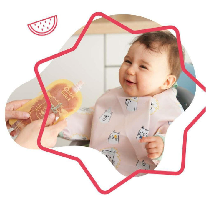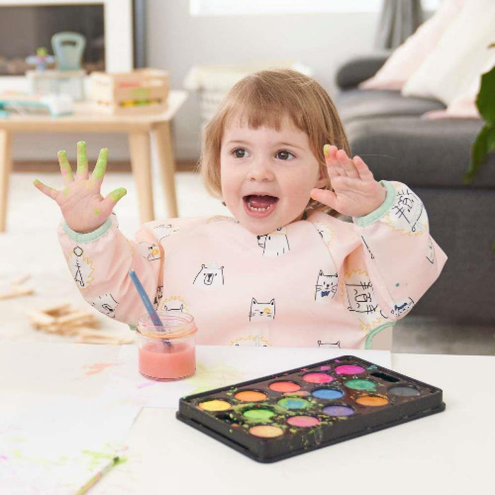 Babete com mangas e um prático bolso frontal, ajusta-se comodamente - graças ao prático fecho de laço e aos punhos com elásticos - para proteger as roupas do seu filho durante as refeições ou enquanto faz trabalhos manuais.