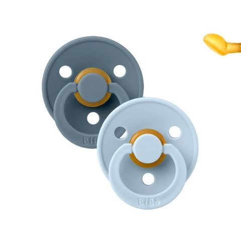 Feitas com borracha natural, as chupetas BIBS têm tetinas anatómicas, curvadas no topo para um ajuste natural ao palato do bebé com uma ponta angulada para facilitar a colocação da língua.