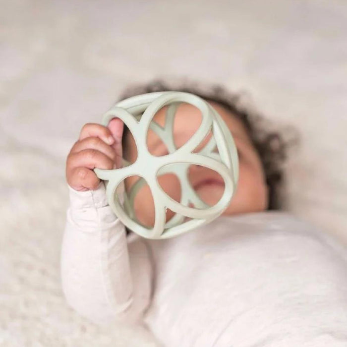 A chegada dos primeiros dentinhos é um marco para o seu bebé, mas nem sempre agradável. O mordedor de silicone alivia a dor, acalma as gengivas e estimula o aparecimento dos novos dentes. O seu formato é simples de agarrar pelas mãos pequenas e de levar à boca pelo bebé.