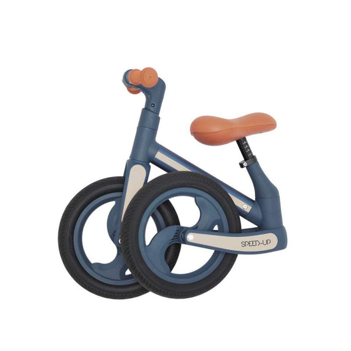 Speed-up é a bicicleta de equilíbrio com a qual as crianças desenvolvem as suas capacidades motoras e aprendem a andar de bicicleta. Tem um selim ergonómico ajustável, pegas antideslizantes com cobertura de borracha, sistema de suspensão, rodas de borracha e uma pega compacta dobrável e de transporte. Características A melhor maneira de aprender a andar de bicicleta e desenvolver um sentido de equilíbrio e capacidades motoras. Guiador regulável. Banco ergonómica, regulável em altura.  Sela compacta dobrável e de transporte para a levar para qualquer lugar e guardá-la num espaço pequeno. Pega antiderrapante com capa de borracha macia. Rodas de borracha de alta resistência. Sistema de suspensão. Dobragem compacta com um só clique. Estrutura de chassis estável e resistente ao impacto. Ângulo de viragem do guiador 110º. Utilização