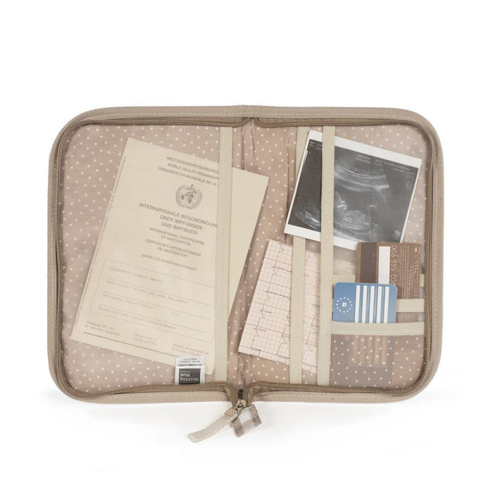 Um acessório imprescindível para levar consigo para todo o lado e que o ajudará a manter em ordem toda a documentação do seu bebé. Confecionado com materiais resistentes, possui vários bolsos interiores plásticos para melhor organização. O fecho de correr mantém os documentos seguros.