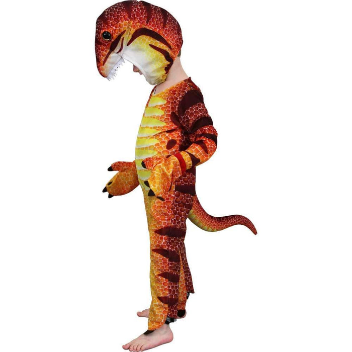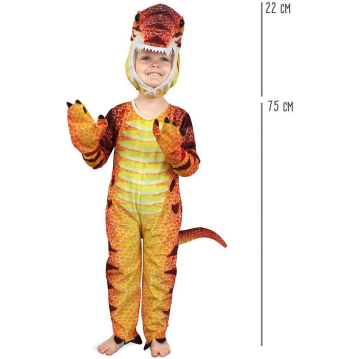 Disfarce de dinossauro com 1 fato de corpo, 2 luvas, 1 cabeça de dinossauro.