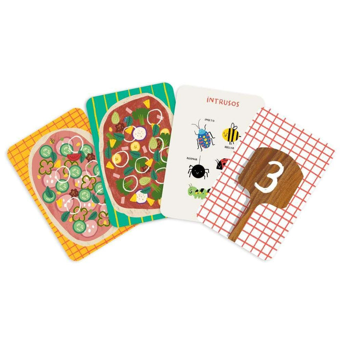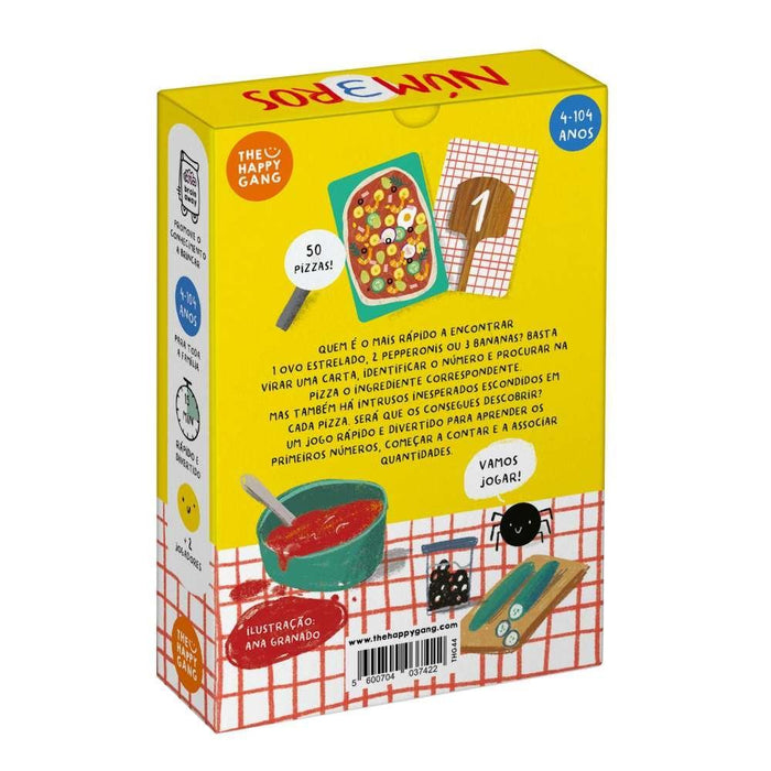 Quem é o mais rápido a encontrar 1 ovo estrelado, 2 pepperonis ou 3 bananas? "Procura e Encontra Números" é um jogo de cartas divertido e educativo que vos desafia a contar e associar quantidades rapidamente.